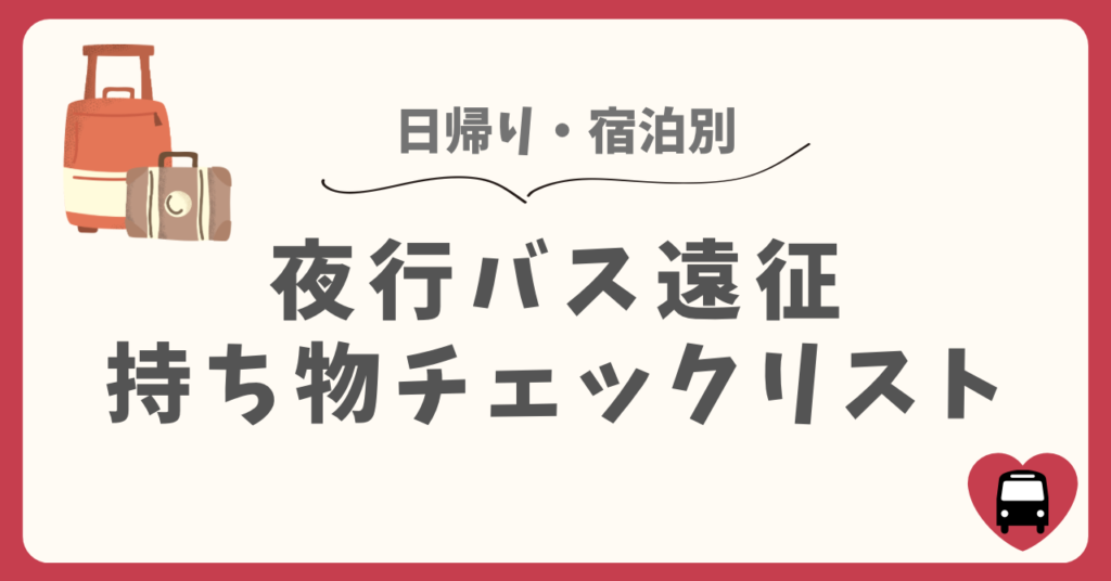この記事では、夜行バス遠征に必要なアイテムを日帰り・宿泊別に徹底解説!